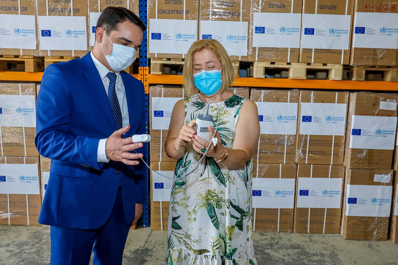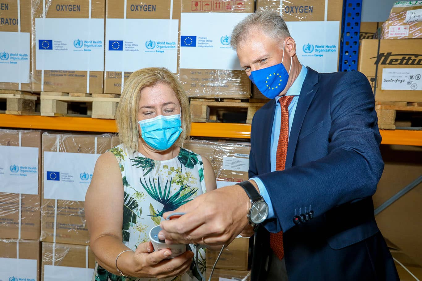 Bakı, 7 sentyabr 2020-ci il – Avropa İttifaqı (Aİ) və Ümumdünya Səhiyyə Təşkilatı (ÜST) COVID-19-lu ağır xəstələrin müalicəsində istifadə olunması üçün 129 ədəd oksigen konsentratoru və 60 ədəd pulsoksimetri Azərbaycanın Səhiyyə Nazirliyinə təhvil verib.