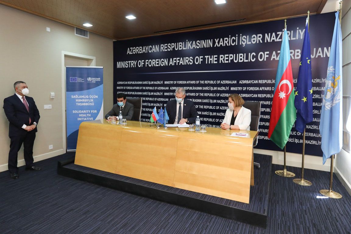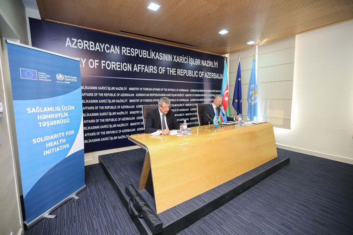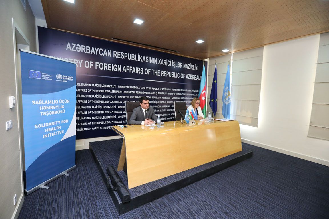 Avropa İttifaqının Azərbaycandakı Nümayəndəliyinin rəhbəri Kestutis Yankauskas və ÜST-nin Azərbaycandakı nümayəndəsi Hande Harmancı COVID-19-un yayılmasının qarşısını almaq məqsədilə böyük yardım paketinin bir hissəsi olan bu avadanlıqları Səhiyyə Nazirliyinə təhvil verib.
