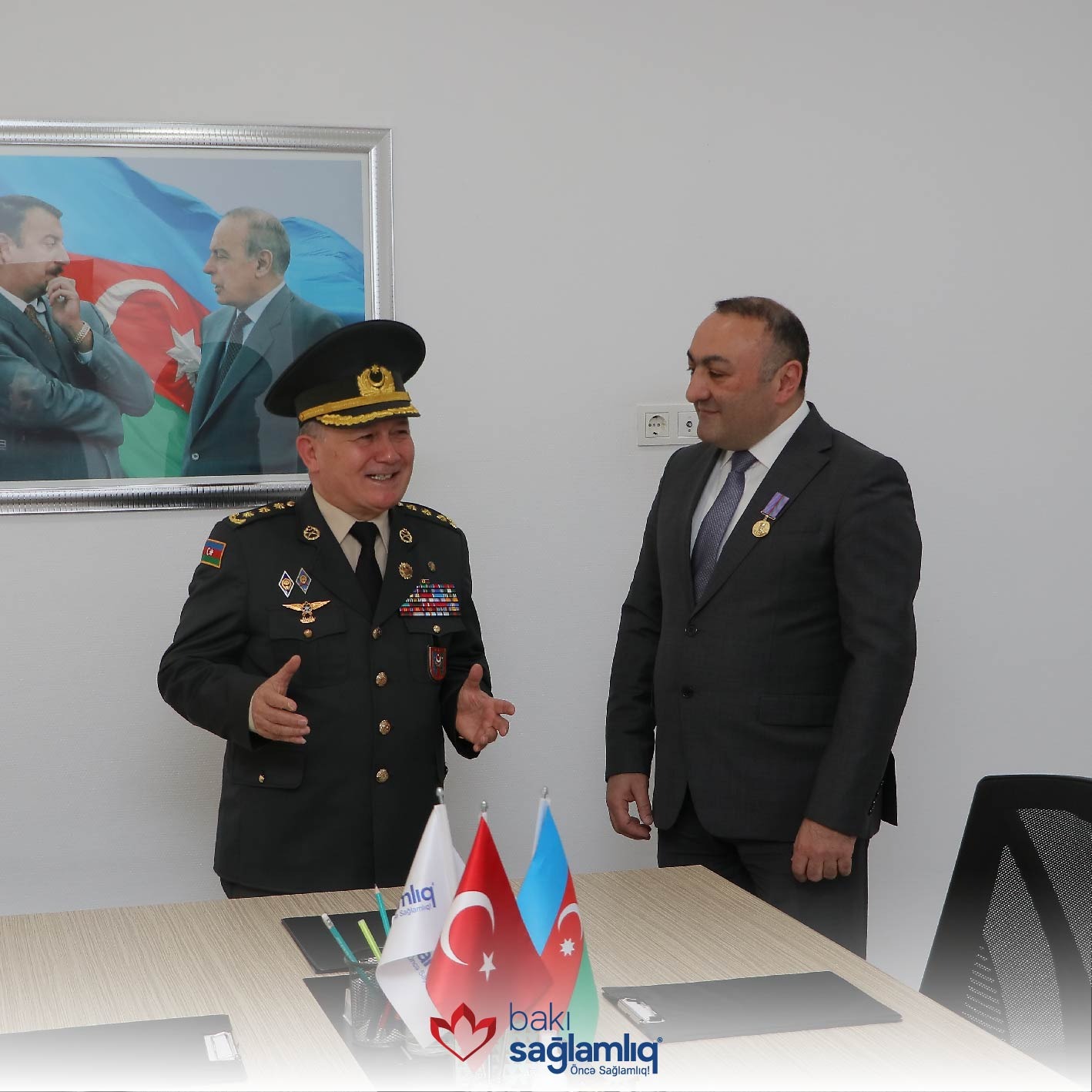 Bakı Sağlamlıq Mərkəzinin İcraçı direktoru Dos. Dr. Asiman Həsənov Müharibə, Əmək və Silahlı Qüvvələr veteranları Təşkilatının sədr müavini polkovnik Cəlil Xəlilov ilə görüşüb