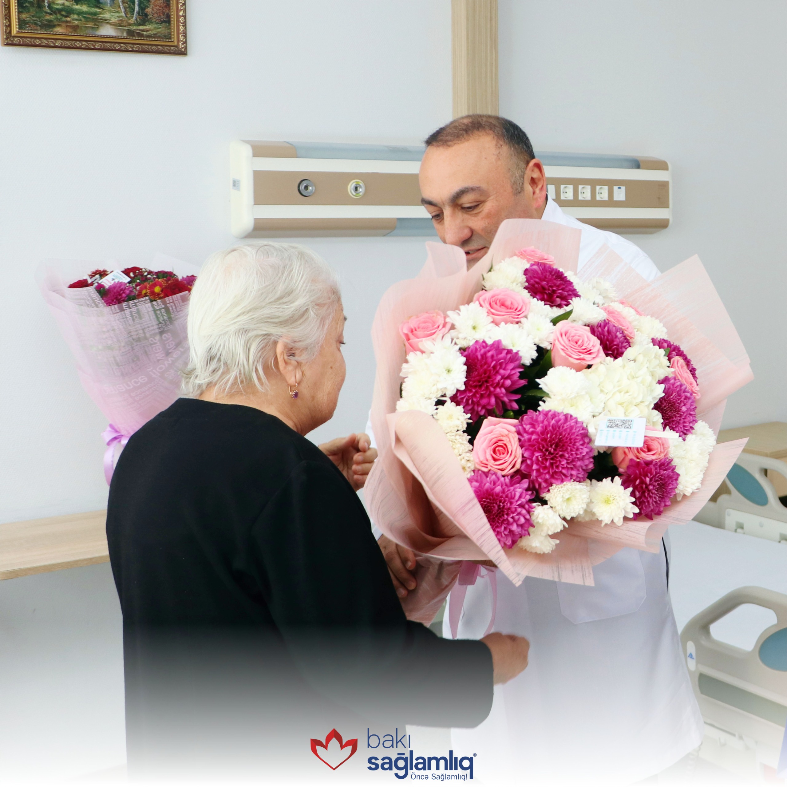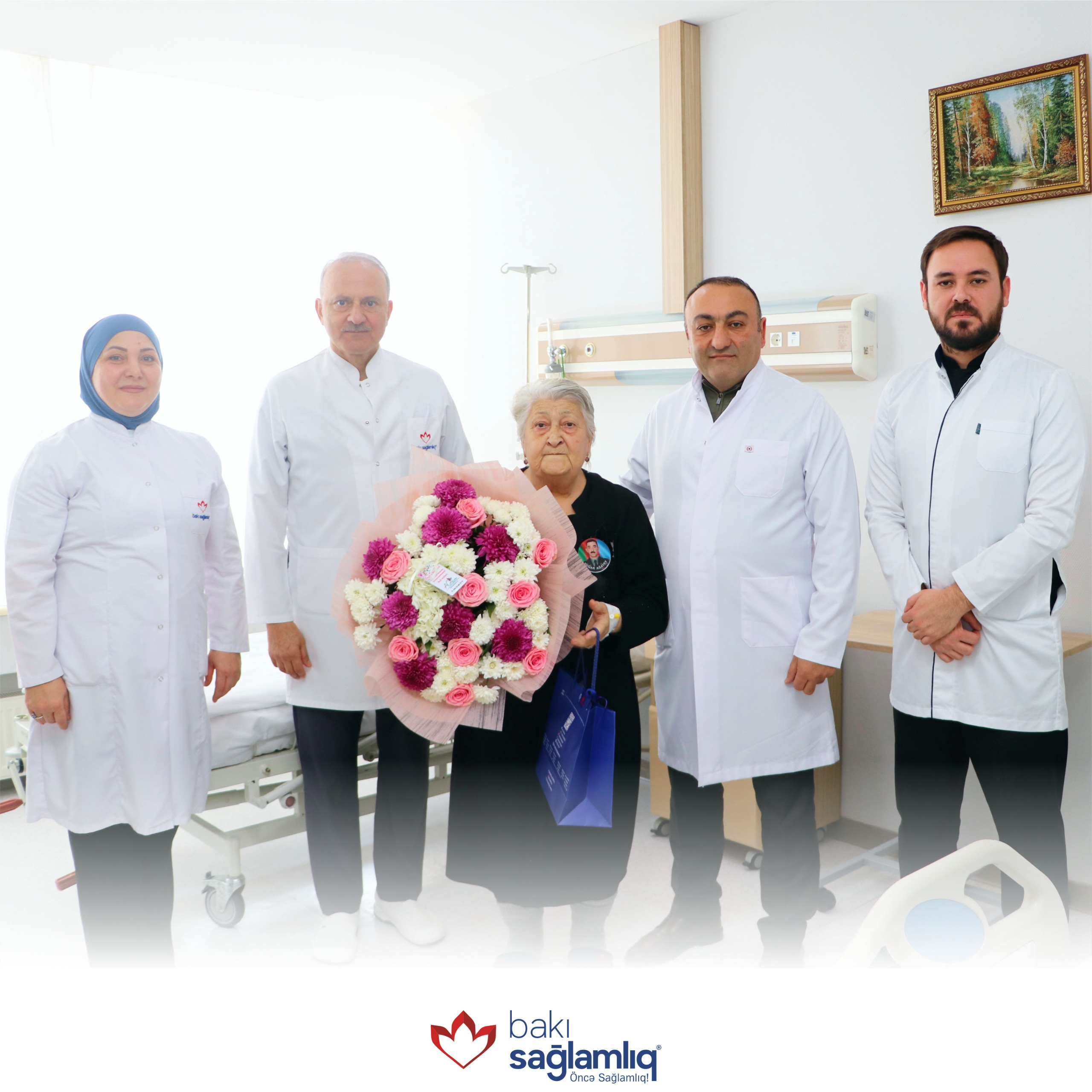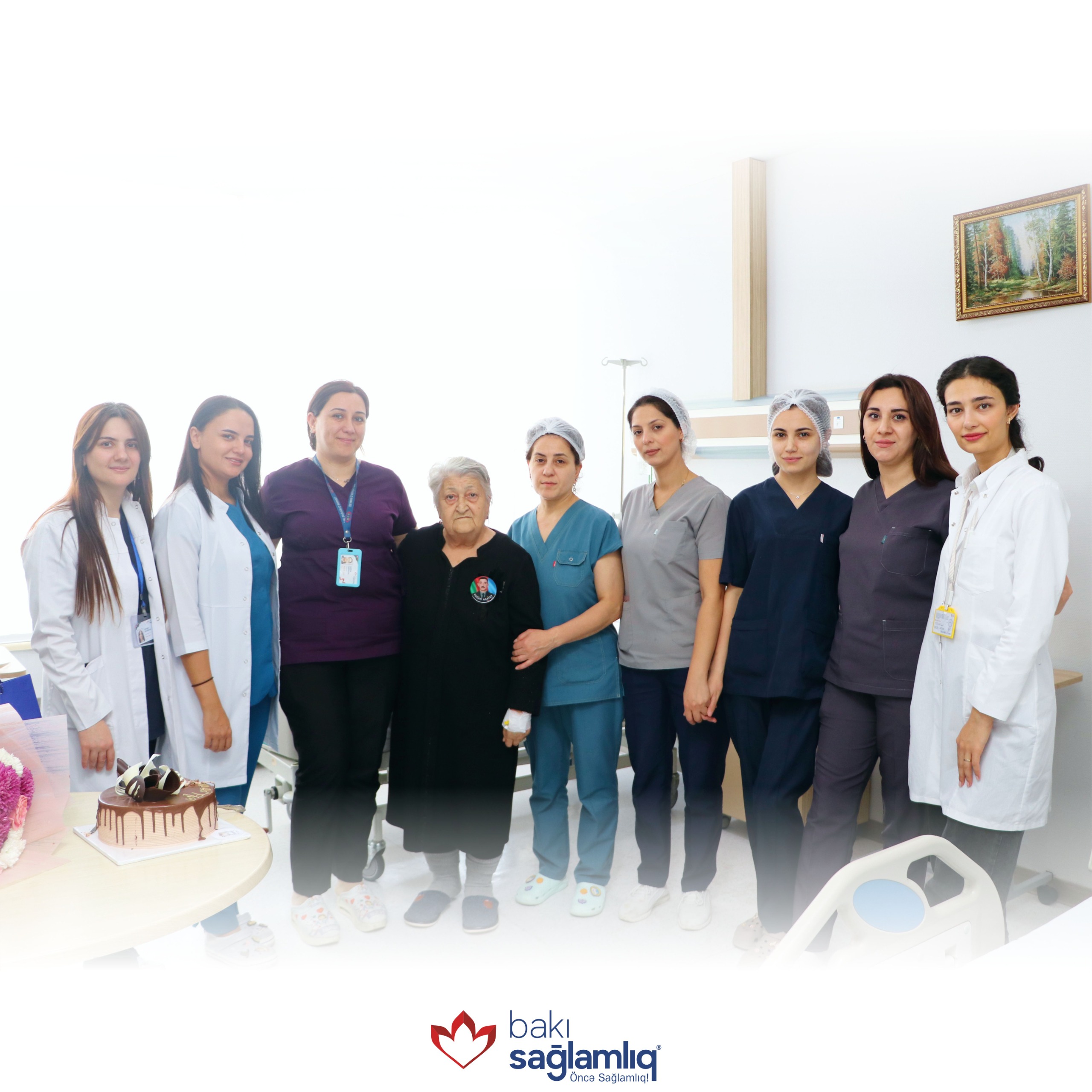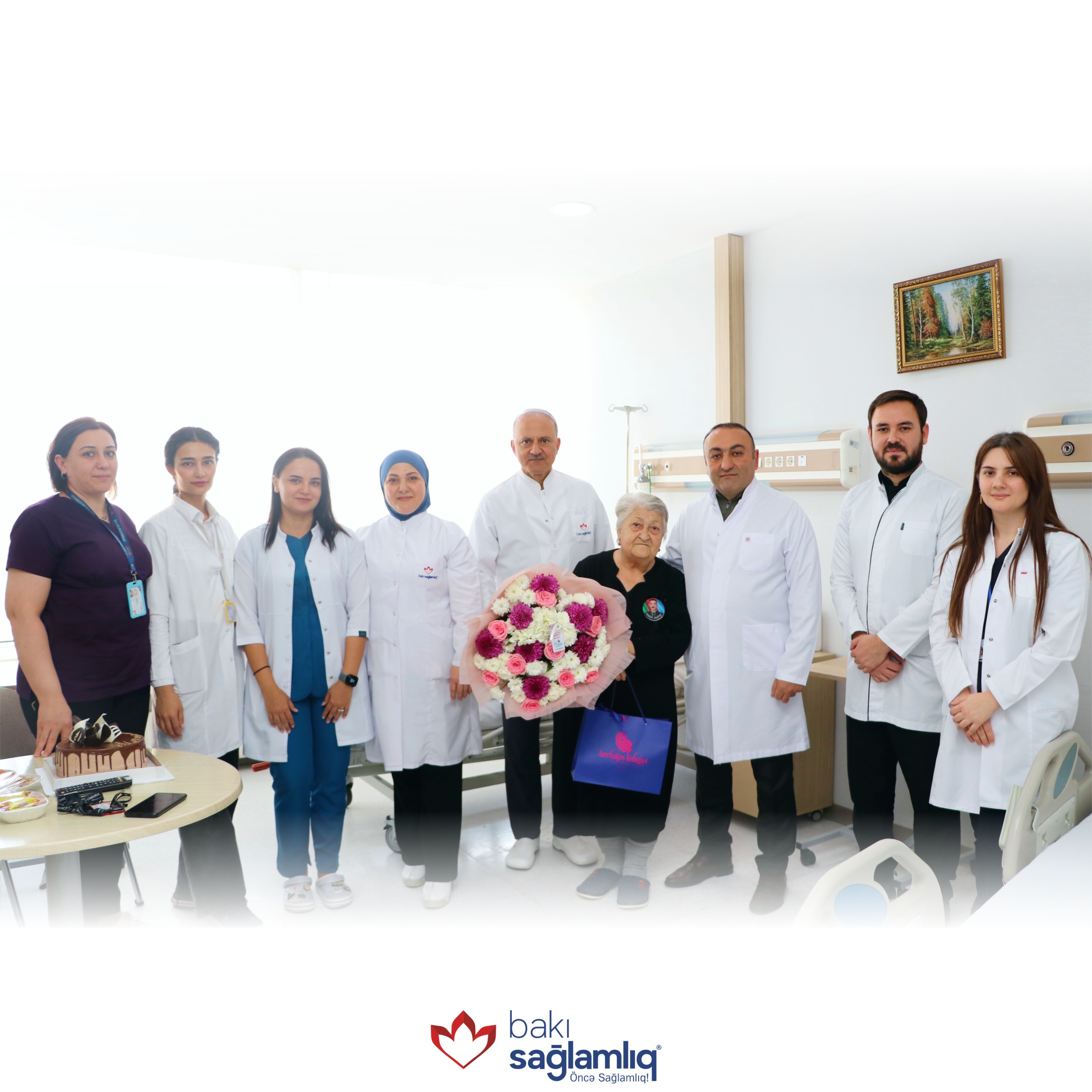 Xanım Ağayevanın doğum günü münasibətilə tort kəsilib və Bakı Sağlamlıq Mərkəzi adından hədiyyələr təqdim olunaraq, xatirə şəkli çəkdirilib.