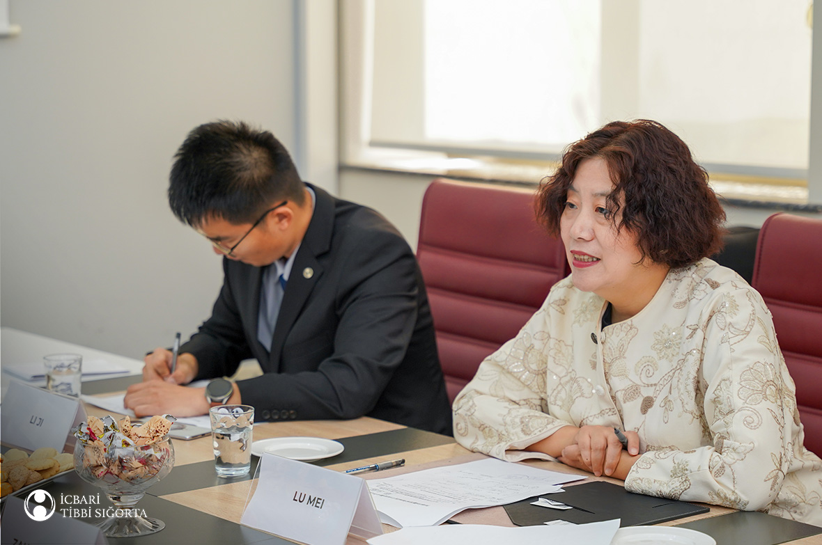 Öz növbəsində səfir xanım Lu Mey məlumat verib ki, Çin Xalq Respublikasının səhiyyə sistemində əldə olunan rəqəmsallaşma təcrübəsi, tibbi sığortanın idarə olunması üzrə yanaşmalar və tibb müəssisələrinin maliyyələşmə modelləri sahəsində Azərbaycanla bilik və təcrübə mübadiləsində maraqlıdır. Səfir həmçinin vurğulayıb ki, Çin Milli Tibbi Sığorta İdarəsinin fəaliyyəti Azərbaycanın İcbari Tibbi Sığorta üzrə Dövlət Agentliyinin funksiyaları ilə bir çox baxımdan oxşarlıq təşkil edir. Bu sahədə daha ətraflı məlumat əldə etmək üçün Azərbaycan nümayəndə heyətinin Çinə səfərinin məqsədəuyğun olduğunu bildirib.