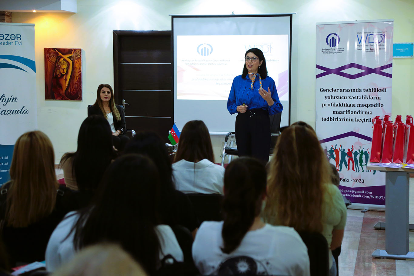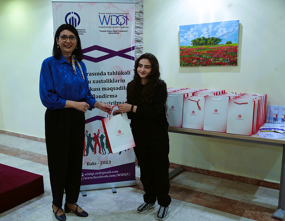 Tədbiri giriş sözü ilə açan Xəzər Gənclər Evinin nümayəndəsi Pərvin Şirvanı qonaqları və iştirakçıları salamlayaraq “İnkişafa Doğru Qadın Təşəbbüsü” İctimai Birliyinin gəncləri maarifləndirmək məqsədilə həyata keçirdiyi işin əhəmiyyətini vurğulayıb.