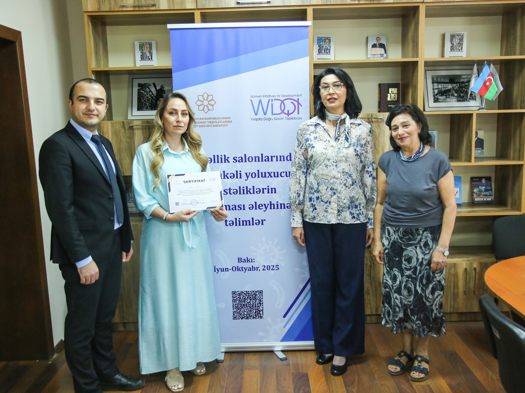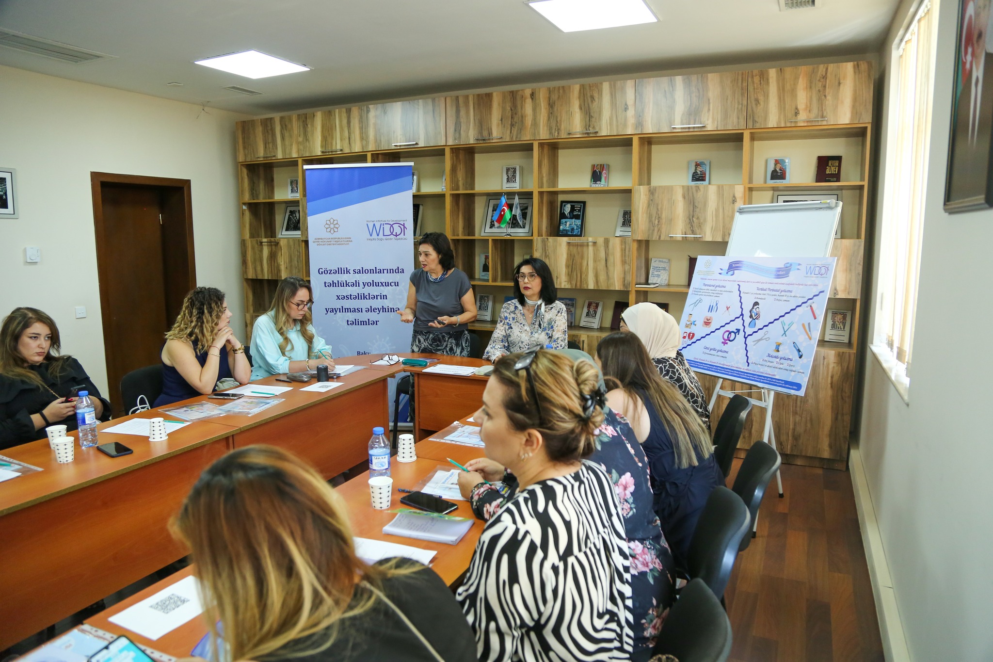 “İnkişafa Doğru Qadın Təşəbbüsü” İctimai Birliyi Azərbaycan Respublikasının Qeyri-Hökumət Təşkilatlarına Dövlət Dəstəyi Agentliyinin maliyyə yardımı ilə icra etdiyi “Gözəllik salonlarında təhlükəli yoluxucu xəstəliklərin yayılması əleyhinə təlimlər” adlı layihə çərçivəsində növbəti təlimini keçirib.