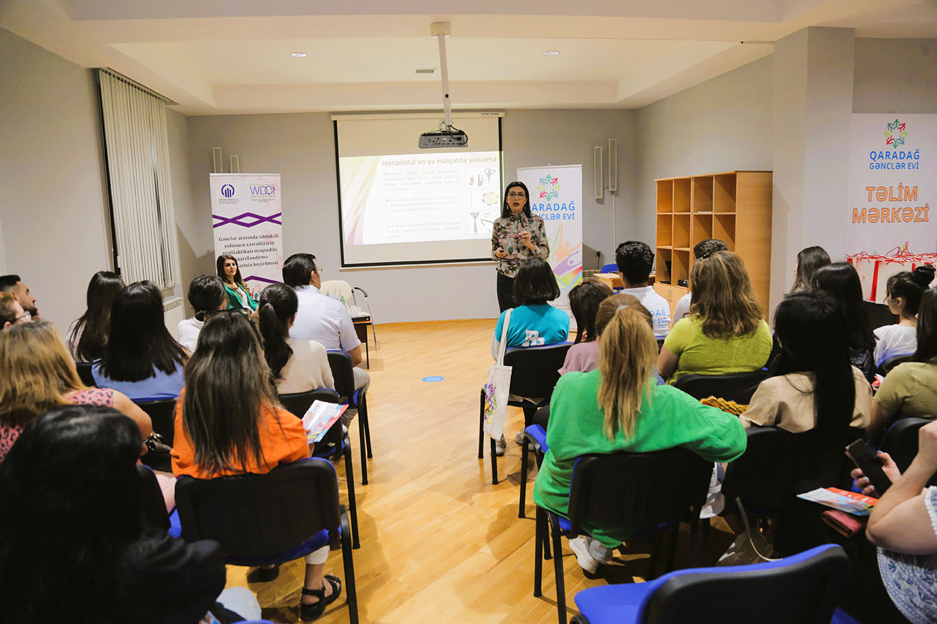 Daha sonra çıxış edən  İctimai Birliyin sədri, layihə rəhbəri Ziba Nəbiyeva öncə tədbirin keçirilməsi üçün yaradılan şəraitə və imkanlara görə tərəfdaş qurum olan Gənclər və İdman Nazirliyinə və Qaradağ Gənclər Evinin heyətinə minnətdarlığını bildirib. O, qeyd edib ki, “sağlam gəncliyin formalaşması üçün onların zamanında məlumatlara əlçatanlığını təmin etmək vacib şərtdir. Bu baxımdan gənclər evlərinin əsas benefisiarları olan gənclər üçün mütəmadi olaraq maarifləndirici tədbirlərin keçirilməsində böyük fayda var”.