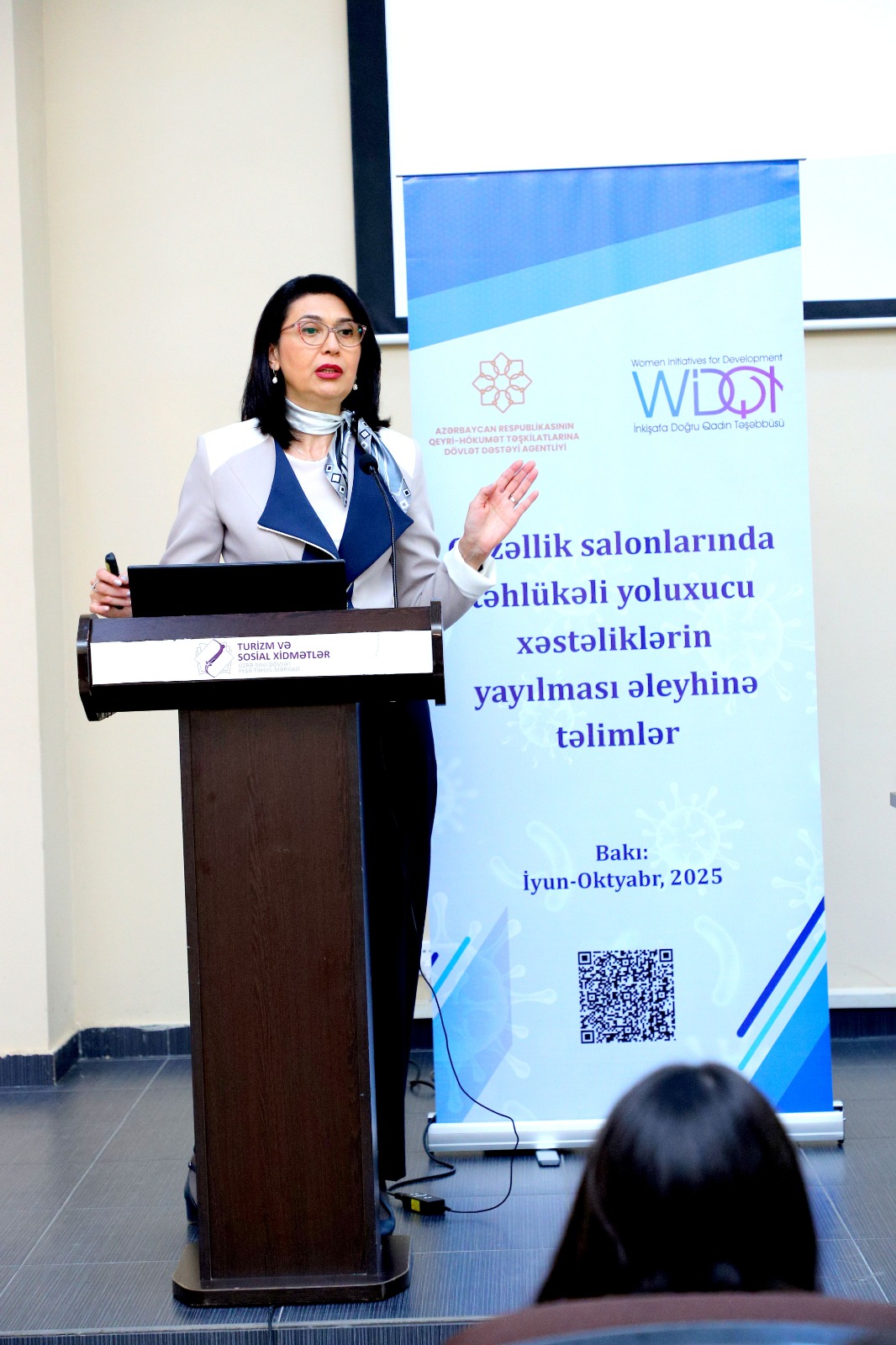 “İnkişafa Doğru Qadın Təşəbbüsü” İctimai Birliyi Azərbaycan Respublikasının Qeyri-Hökumət Təşkilatlarına Dövlət Dəstəyi Agentliyinin maliyyə yardımı ilə icra etdiyi “Gözəllik salonlarında təhlükəli yoluxucu xəstəliklərin yayılması əleyhinə təlimlər” adlı layihə çərçivəsində növbəti təlimini keçirib.