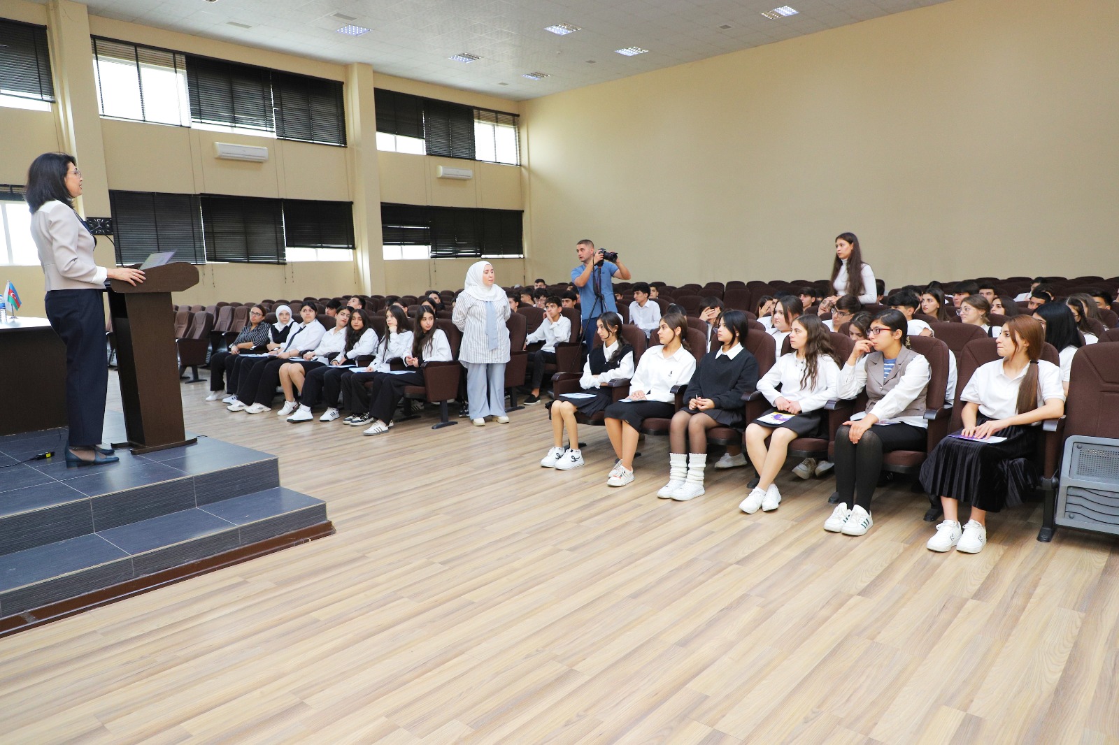 İctimai Birliyin sədri, layihə rəhbəri Ziba Nəbiyeva çıxışında Turizm və Sosial Xidmətlər üzrə BDPTM-də bərbər-vizajist-manikürçü ixtisası üzrə təhsil alan tələbələrə təlimin keçirilməsi üçün göstərilən dəstəyə görə Peşə Təhsili üzrə Dövlət Agentliyi və Mərkəzin rəhbərliyinə təşəkkürünü bildirib.