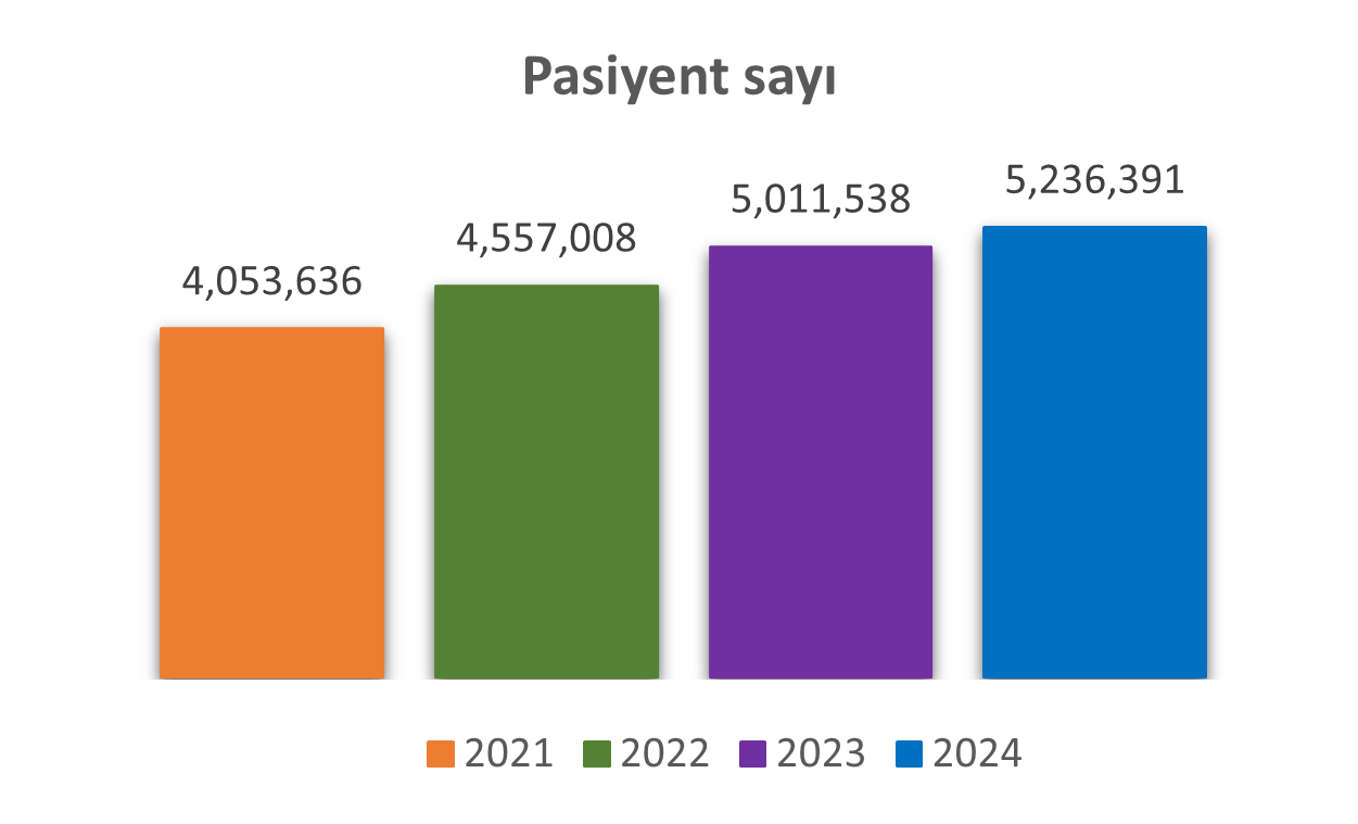 2021-2024-cü illər ərzində icbari tibbi sığorta ilə tibbi xidmət alan pasiyentlərin sayı artan xətlə davam edib. Belə ki 2021-ci illə müqayisədə 2024-cü ildə tibbi xidmət almış pasiyentlərin sayında 29% artım qeydə alınıb.