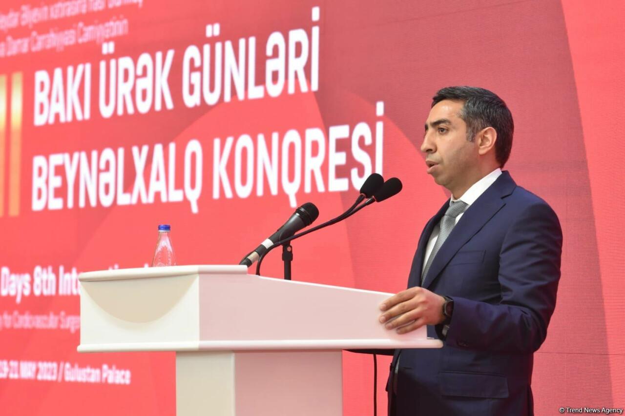 Tədbirdə İcbari Tibbi Sığorta üzrə Dövlət Agentliyinin sədri Zaur Əliyev, Tibbi Ərazi Bölmələrini İdarəetmə Birliyinin sədri Vüqar Qurbanov, Milli Məclisin Səhiyyə komitəsinin sədri Əhliman Əmiraslanov və digər qonaqlar çıxış edib, ürək-damar xəstəliklərinin dünyada ölüm səbəblərinin başında gəldiyini diqqətə çatdırıb, ölkəmizdə kardiologiya sahəsində görülmüş işlərdən bəhs ediblər.